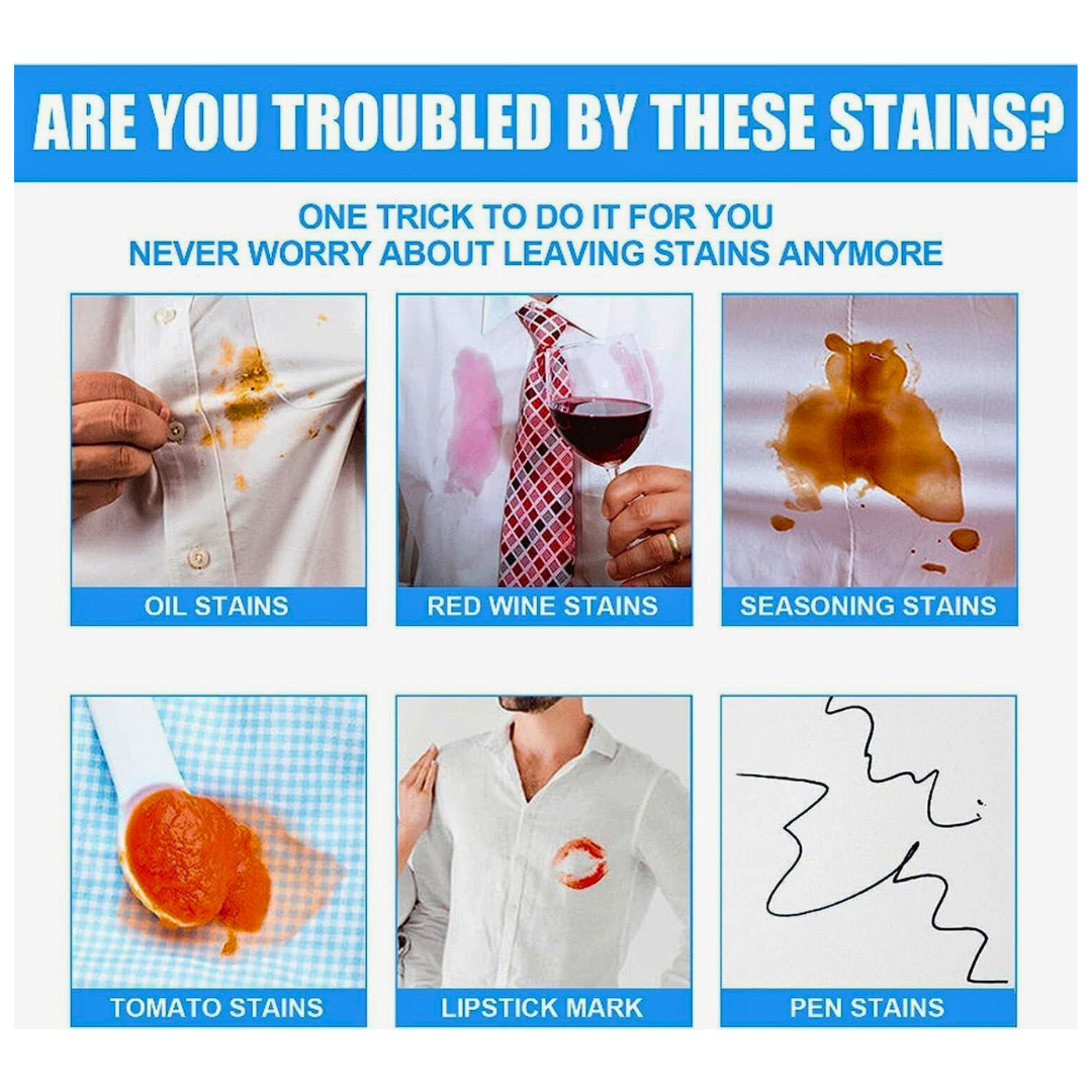 All-in-One Cleaner: Perfect for every cloth type, be it white, dark, colored, or even sofa covers, StainoFix™️ works wonders on wine stains, food marks, and beyond.