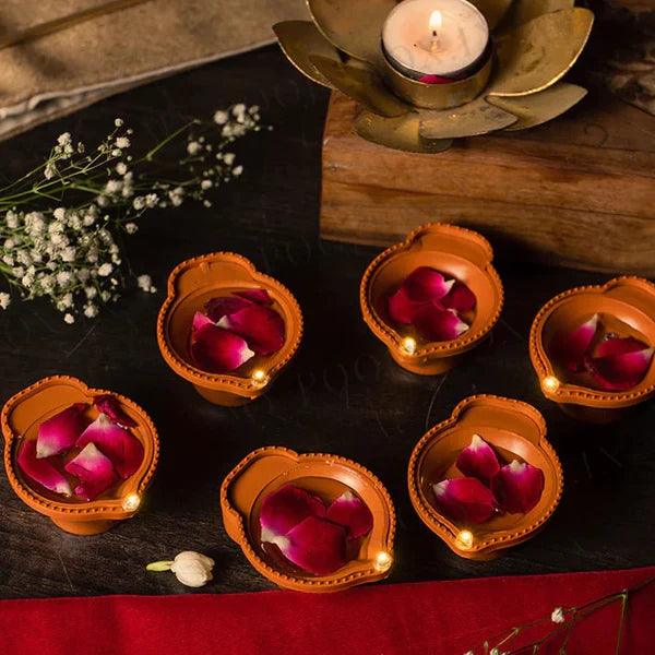 🌍 Easily Portable: The LED lights make these Diyas perfect for any occasion, indoors or outdoors. Light up your home entrance, decorate rangolis, or enhance the ambiance of restaurants and hotel entrances.