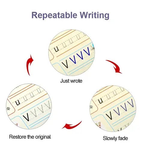 Reusable Handwriting Copybook : Handwriting automatically disappear after dry, great for repeatedly practice. If you want to learn calligraphy, a copybook is a must-have.